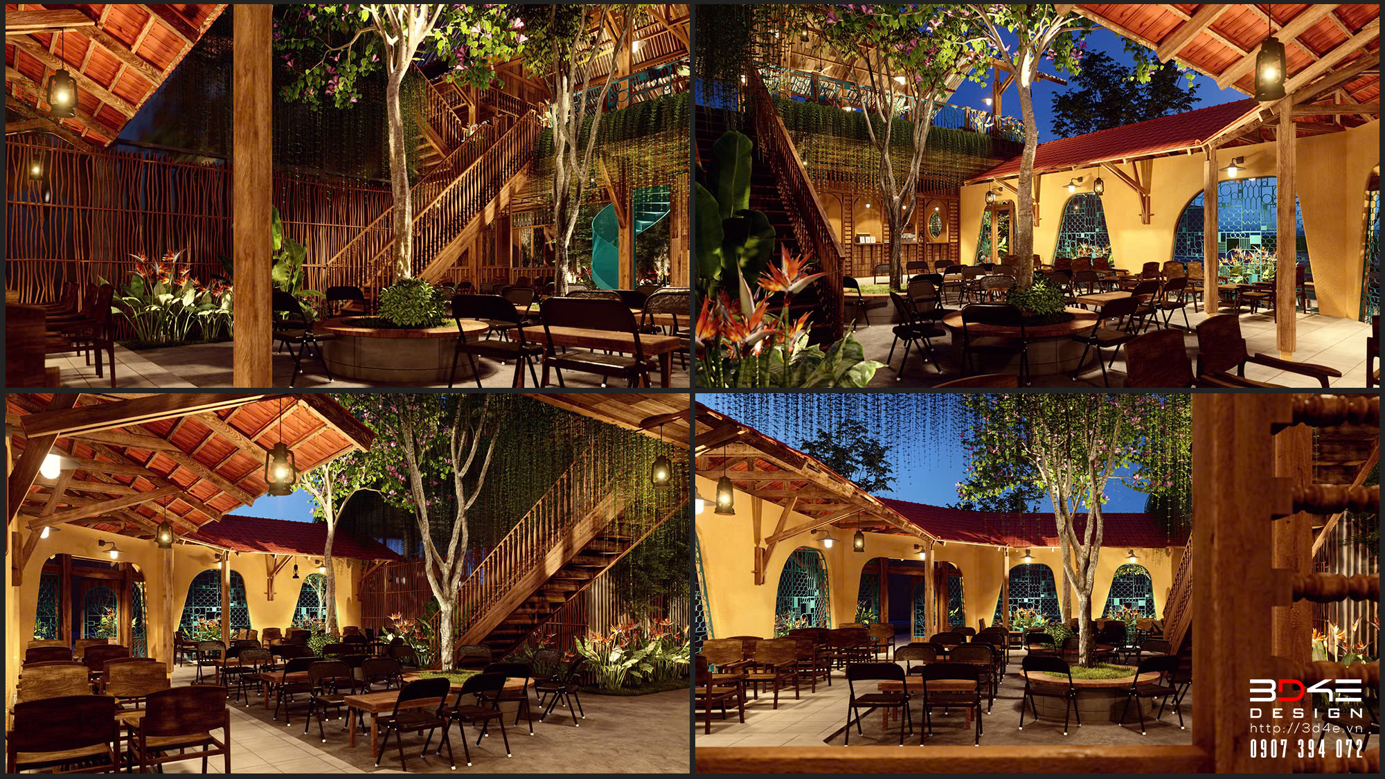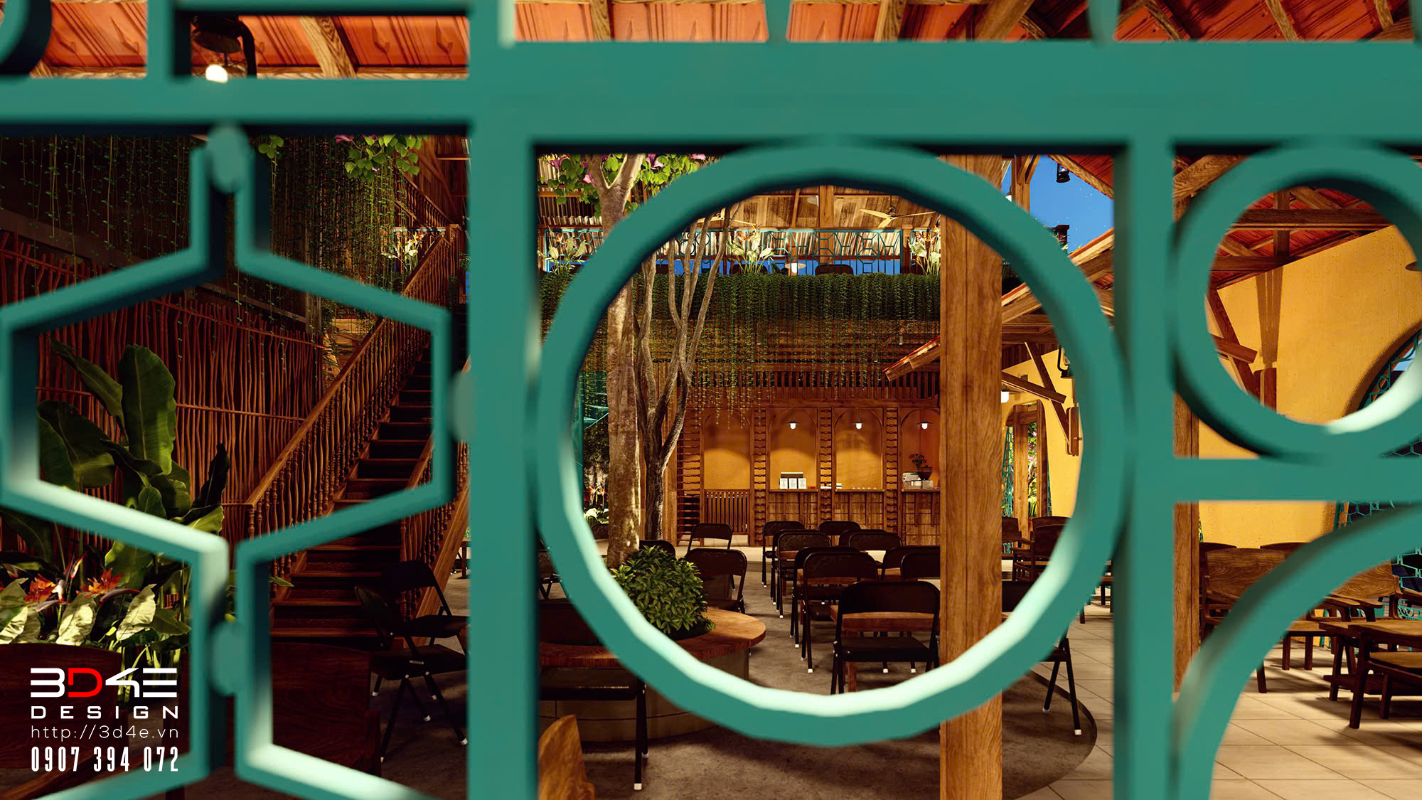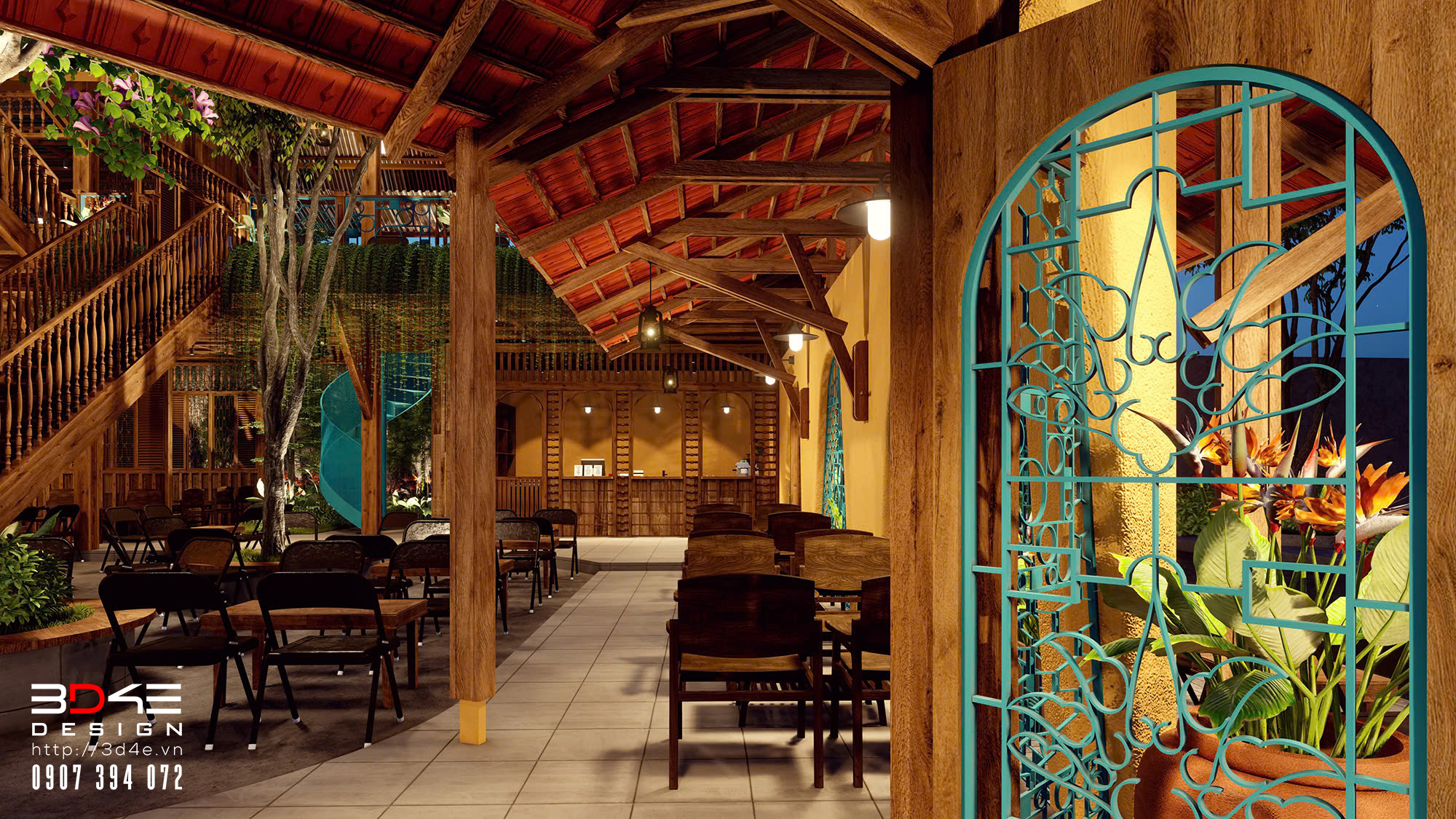 Nội thất gỗ được sử dụng chủ đạo, mang đến không gian ấm cúng, gần gũi nhưng vẫn hiện đại. Các khu vực ngồi được phân chia linh hoạt, tạo cảm giác riêng tư nhưng vẫn giữ được sự kết nối với không gian mở xung quanh.