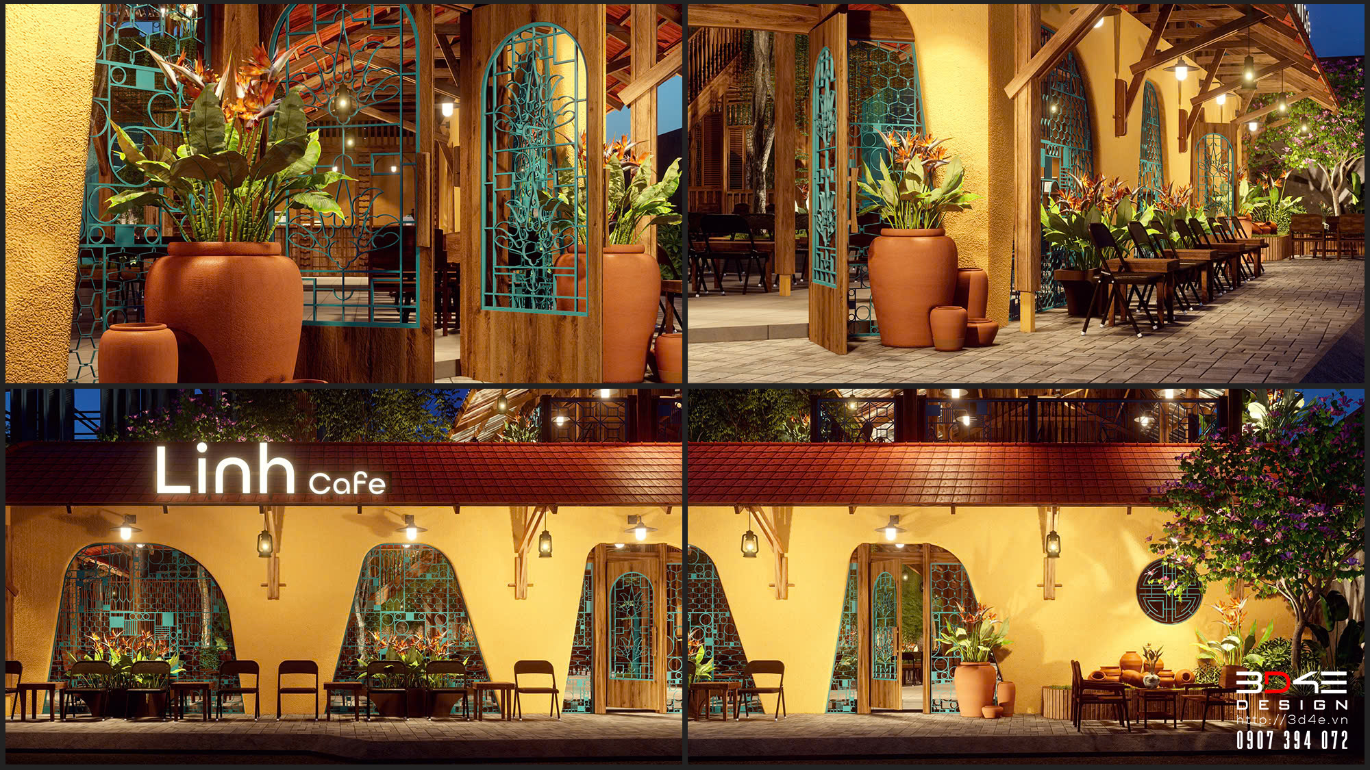 Quán café Linh tọa lạc ngay góc ngã tư, được cải tạo với thiết kế mở, tận dụng tối đa không gian và ánh sáng tự nhiên. Với vị trí đắc địa, không gian quán mang đến cảm giác thoáng đãng, dễ chịu nhờ vào việc bố trí nhiều cây xanh tạo bóng mát, giúp khách hàng vừa thưởng thức café vừa hòa mình vào nhịp sống sôi động của phố xá.