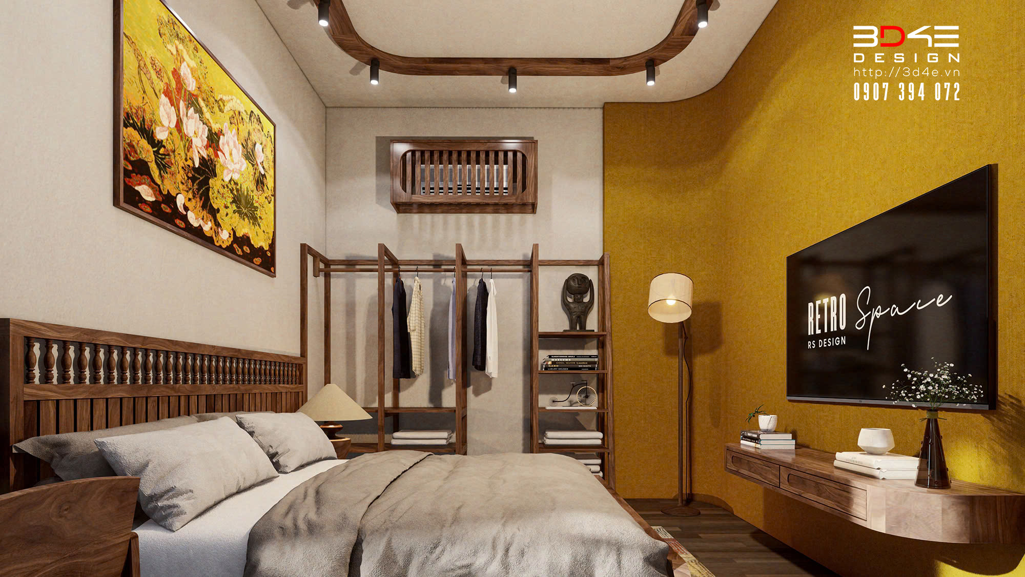 Căn hộ dịch vụ được thiết kế theo phong cách Retro kết hợp hiện đại, mang lại cảm giác hoài cổ nhưng vẫn tươi mới và tiện nghi. Nội thất và sàn lát gỗ tạo nên tổng thể ấm cúng, gần gũi, làm nổi bật vẻ đẹp mộc mạc đặc trưng. Điểm nhấn ấn tượng đến từ các mảng tường sơn xanh dương và vàng mustard, tạo chiều sâu thị giác và mang lại nét sinh động, trẻ trung cho không gian. Sự phối hợp tinh tế giữa chất liệu tự nhiên và màu sắc nổi bật giúp căn hộ vừa có dấu ấn cá nhân, vừa phù hợp với nhu cầu nghỉ dưỡng hay lưu trú dài ngày của khách hàng hiện đại.